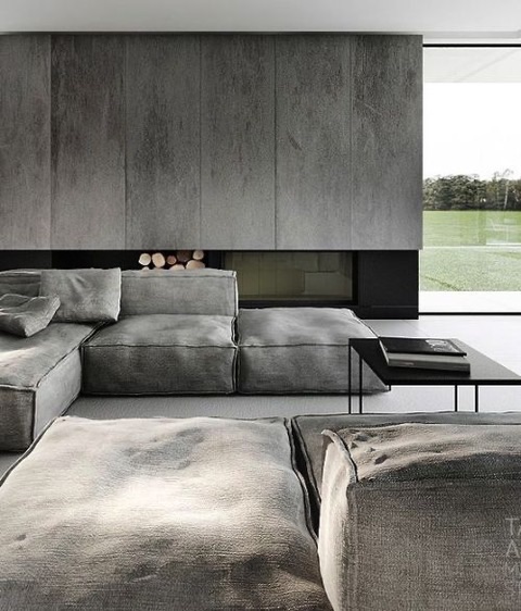 • Space for a large cozy sectional or modular sofa with deep seats,